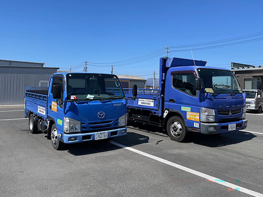 皆様が受付センターに申し込み、「粗大ごみ処理券」を貼り付けていただいた粗大ごみを私たちは、受付センターから指定された場所に向かい、1.5t及び3tパワーゲートトラックで回収しています。
