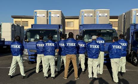仮設トイレのレンタル事業では、スタッフ一同チームワークを発揮して、仕事に取り組んでいます。