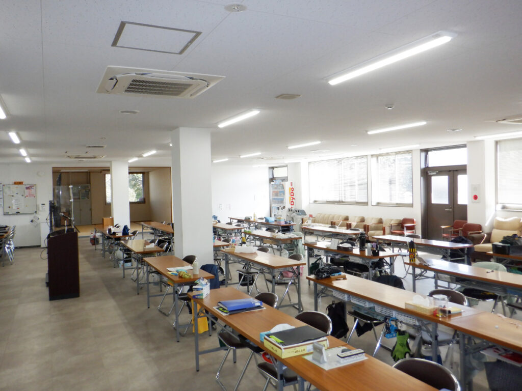 職員が朝礼や昼食などで滞在する部屋です。畳スペースもあります。